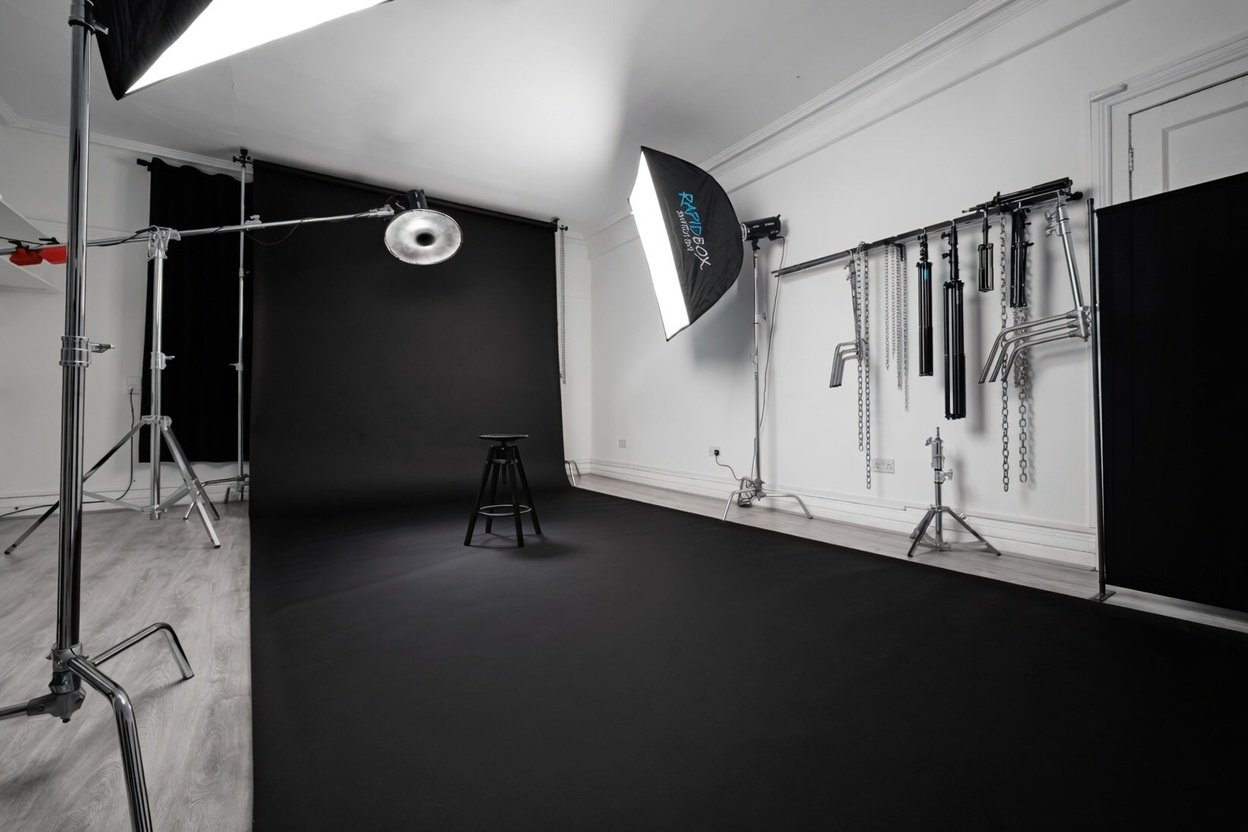 This space is optimized for precise lighting. The black walls provide excellent light control by eliminating reflections and unwanted bounce. As a photography studio rental in Dublin, it excels at headshots, portraits, and sessions where accurate and consistent lighting is essential.
