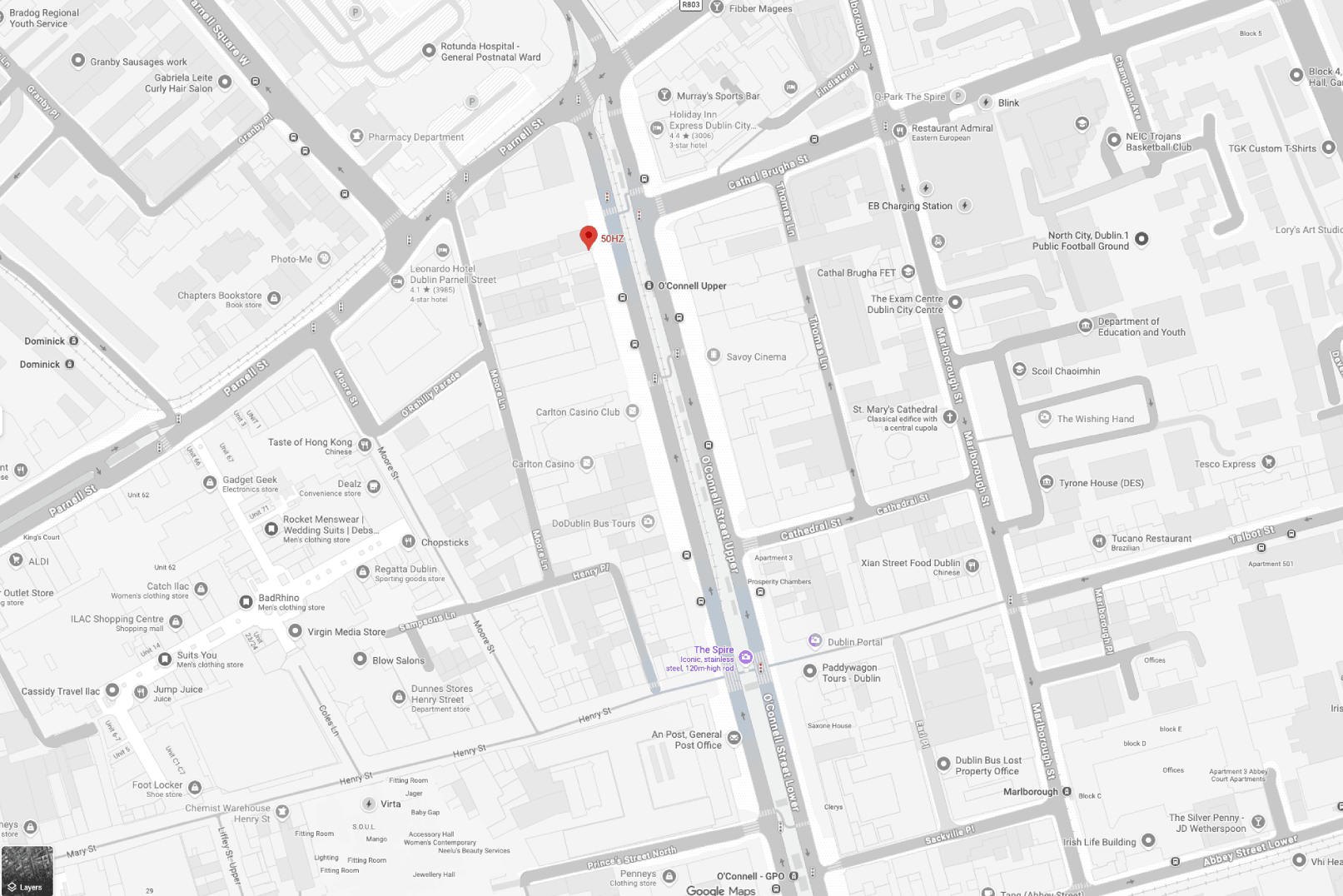 50Hz is conveniently located at 43 O’Connell Street Upper, right by Ned Kelly’s Sportsclub and just steps from The Spire.
